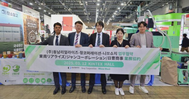 KOPLAS 2025の東南リアライズのブースでは、展示期間中ずっとジャンコーポレーションおよびニッソー商事の担当者が共に参加し、CXP素材が国内だけでなく海外でも活用されている様子を紹介することができました。MOU締結前からニッソー商事は東南リアライズの本社を何度も訪問し、CXPへの理解を深めるために努力してきました。また、展示会には完成度の高いサンプルを持参し、多くの来場者の関心を集めました。